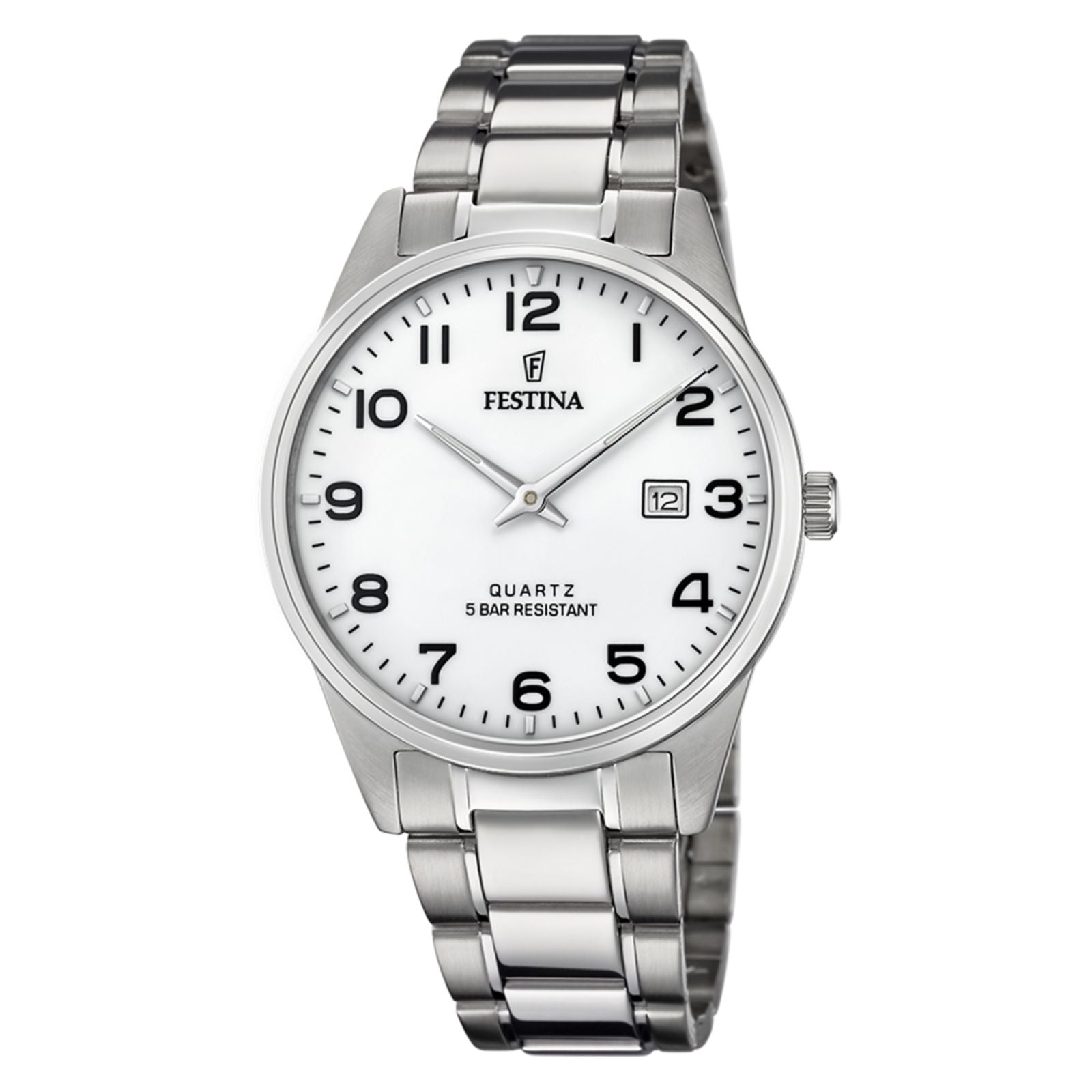 Este reloj marca Festina tiene una caja de Inox con un diámetro de 39 mm y cuenta con una correa de Inox. Dentro de la caja se encuentra un mecanismo de Miyota de alta calidad el cual esta protegido por un cristal Mineral. El reloj es resistente al agua hasta 5 ATM.